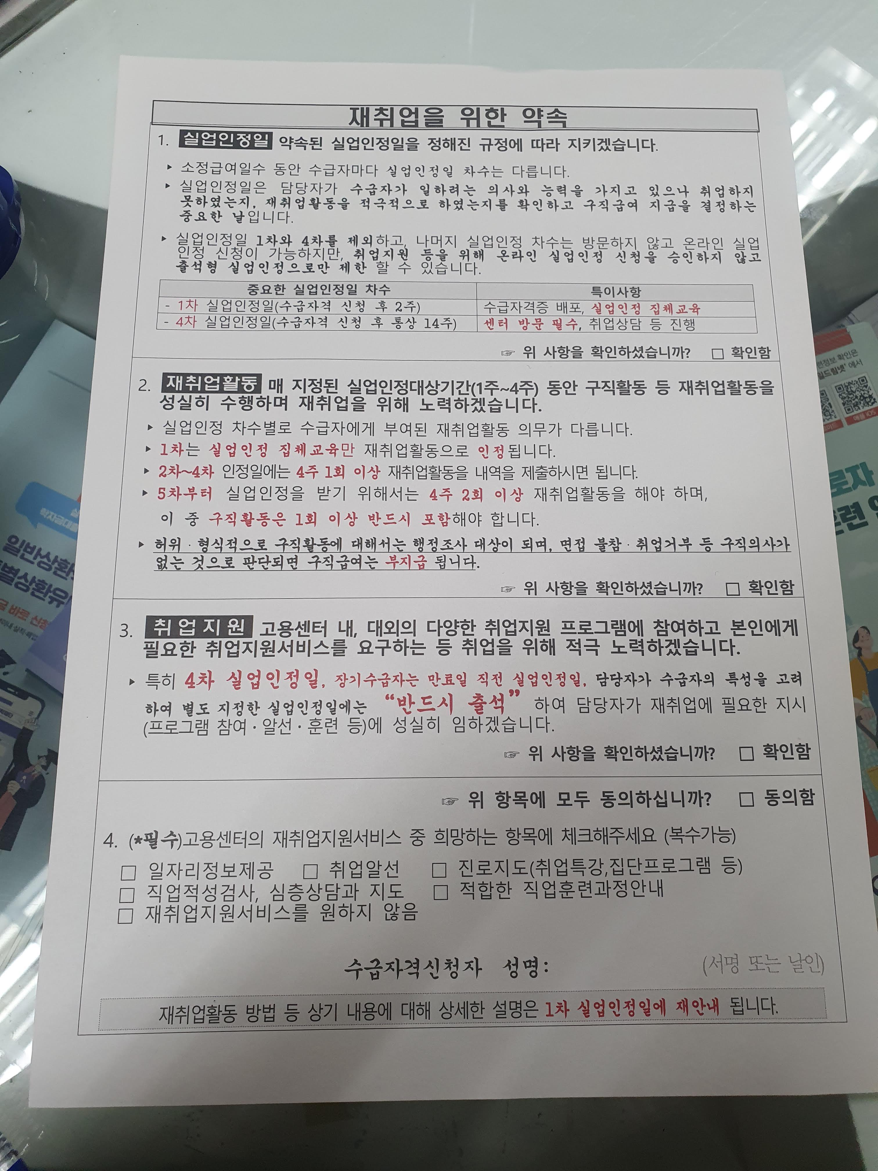 사실 오프라인 센터에 방문하기 전에 전화로 문의해보았는데, 일반적으로는 시간이 흐르면 제출해야 하는 서류들이 잘 접수되어 해결되는 것 같다. 하지만 나는 실업급여를 빨리 수령하기 위해 오프라인 센터에 방문하였다.
