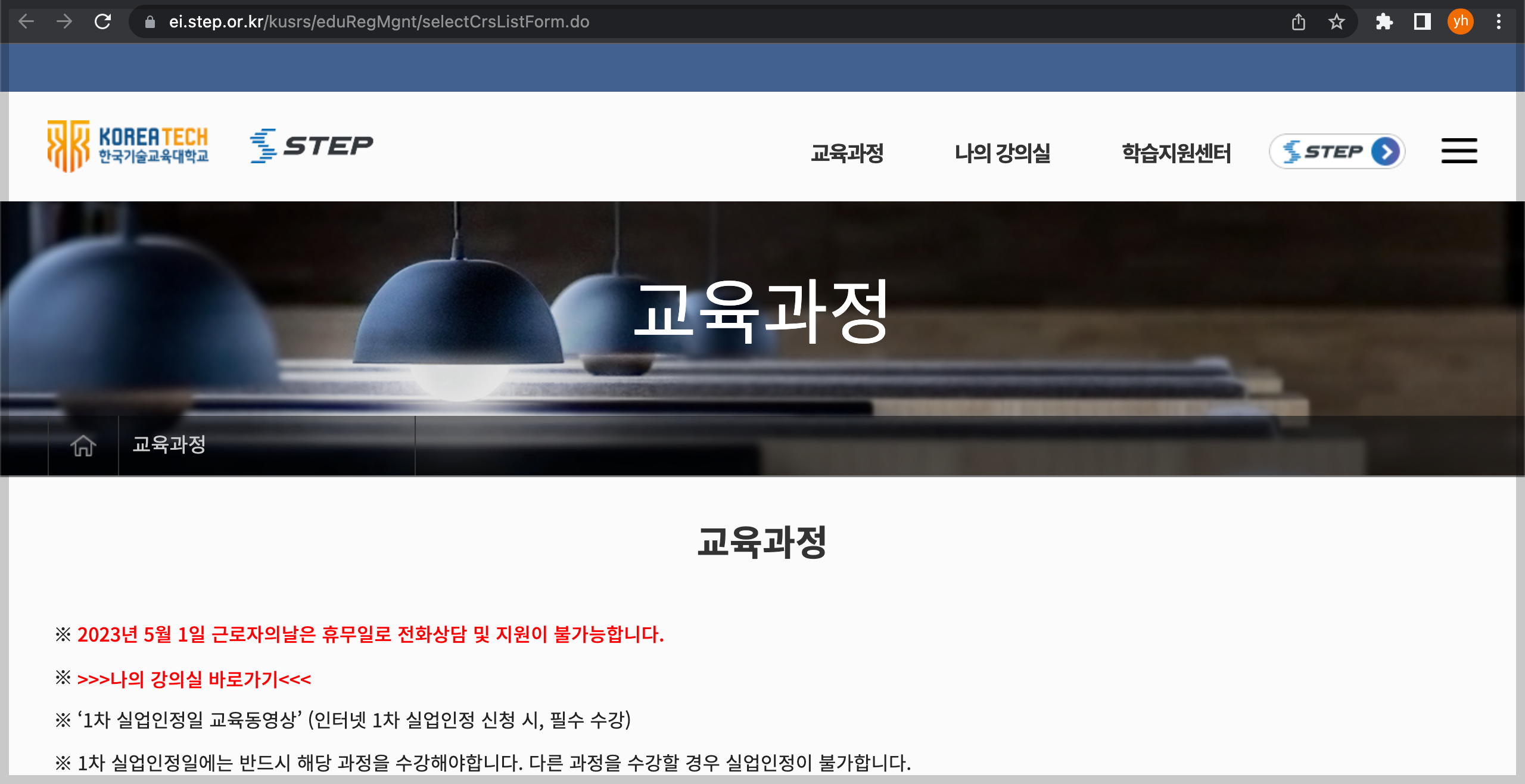 4. 새로운 창에서 '한국기술교육대학교 STEP' 이라는 페이지를 확인 가능