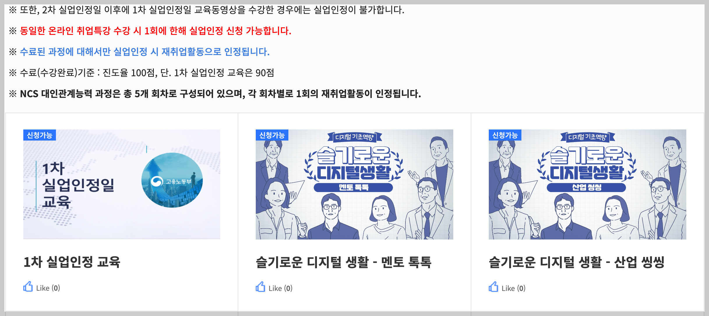 5. 페이지를 아래로 스크롤 다운하면, [1차 실업인정 교육] 이라는 강의 시청