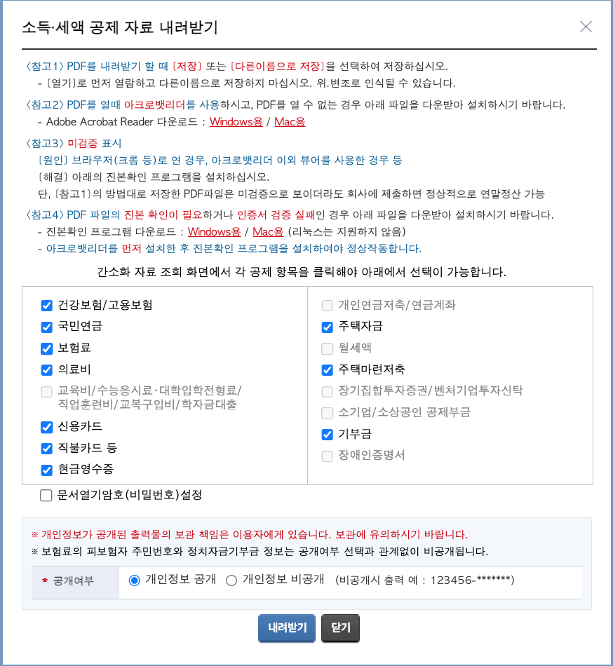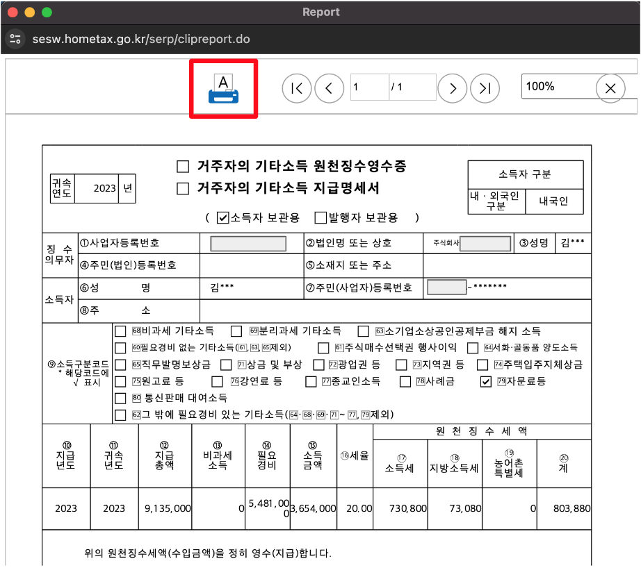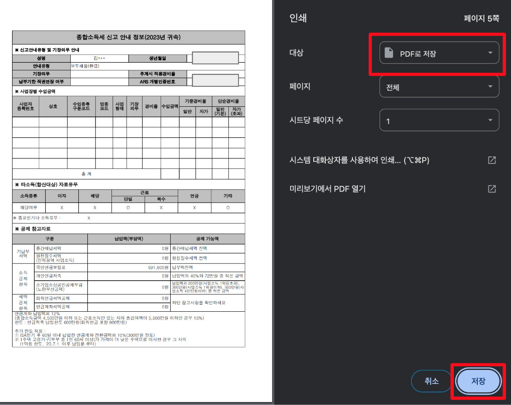 나는 [지급명세서보기] 버튼을 하나씩 클릭해서 PDF 파일로 저장했다.