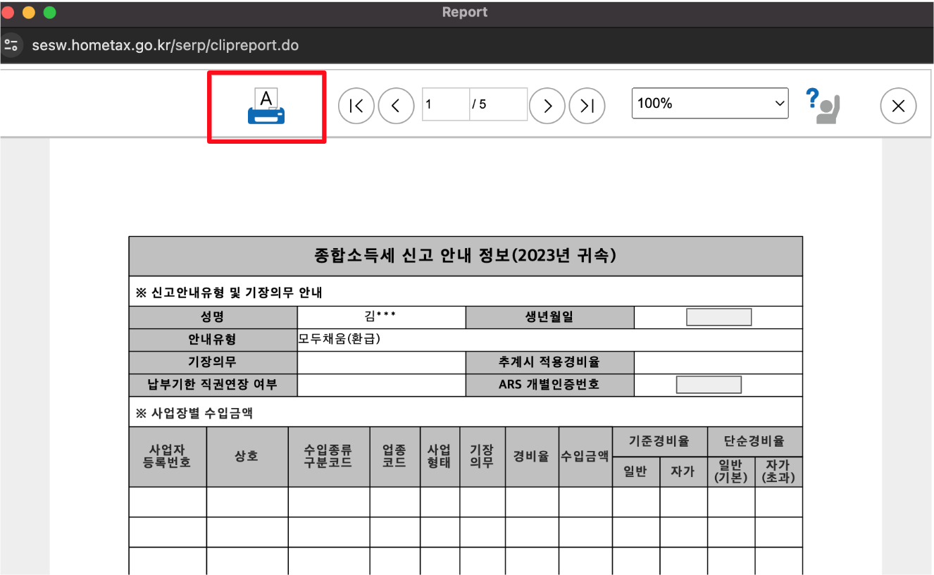 (1) 종합소득세 신고 안내문