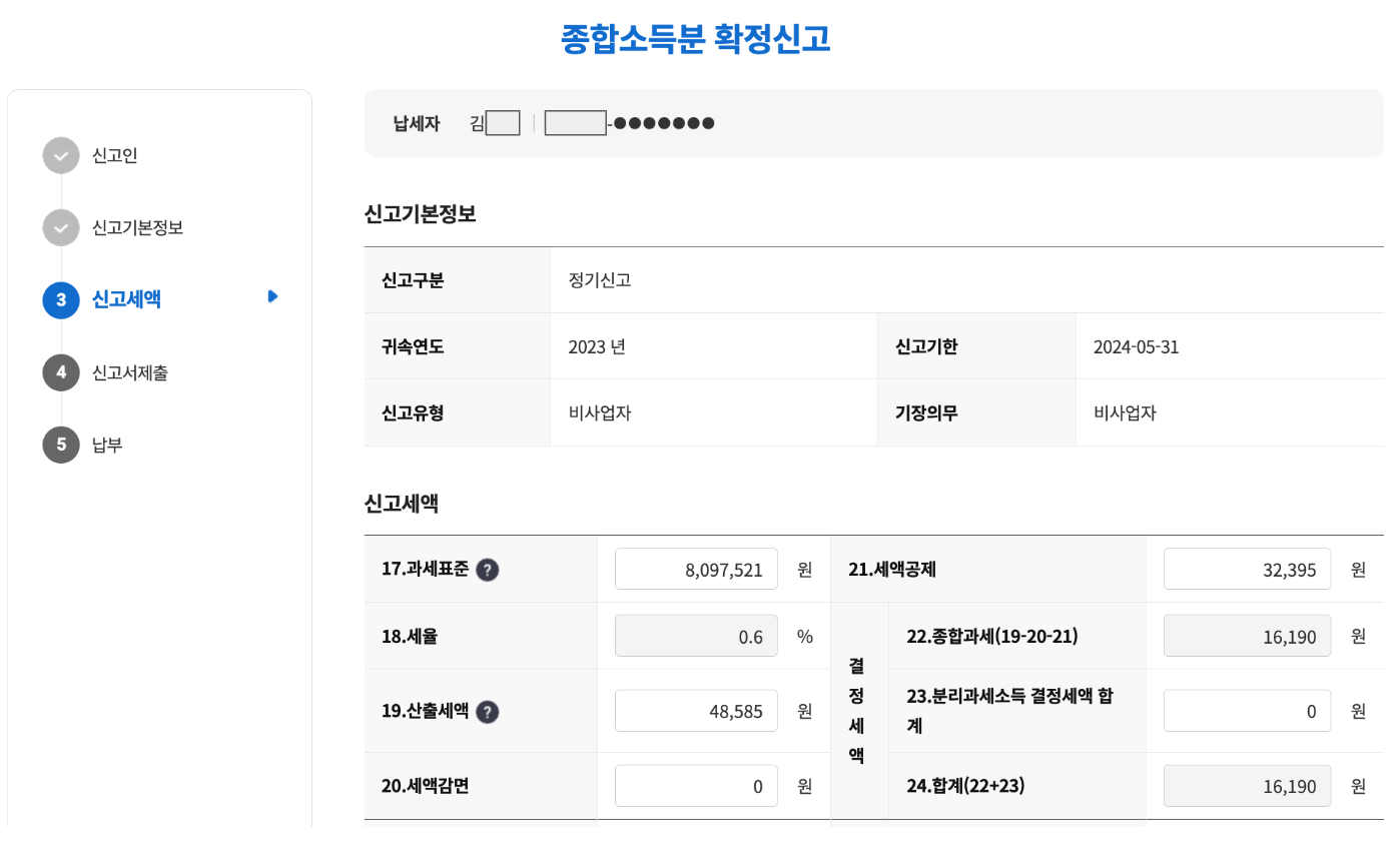 [Step 03. 모두채움 신고/단순경비율 신고]